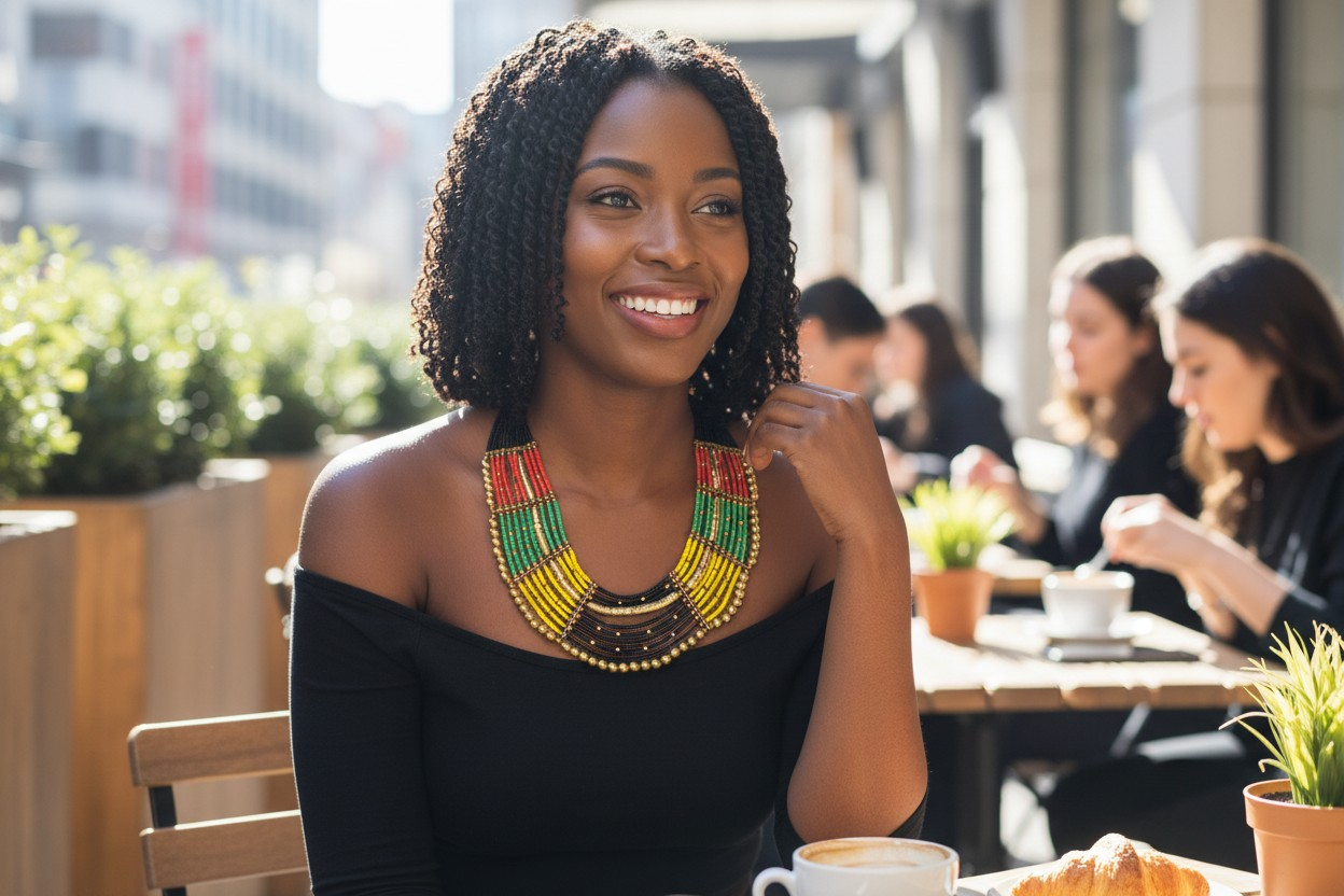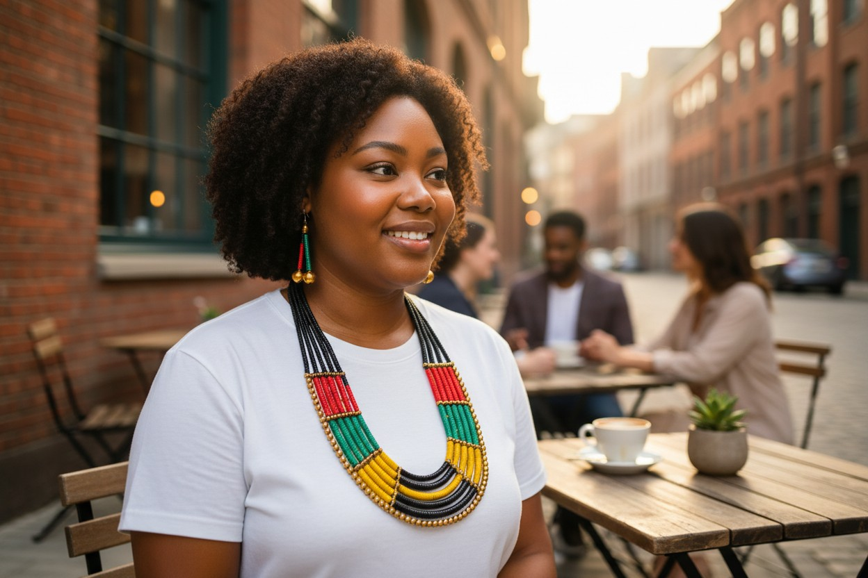 Celebrate culture, color and confidence with this handcrafted roster. Beads necklace and earring set. Designed with the iconic red gold, green and black palette, each bead is carefully selected to honor unity, strength, and positive energy.